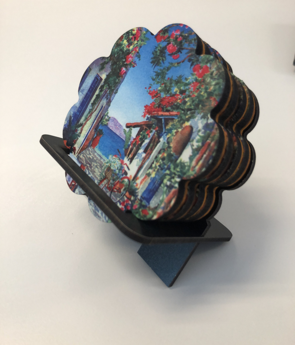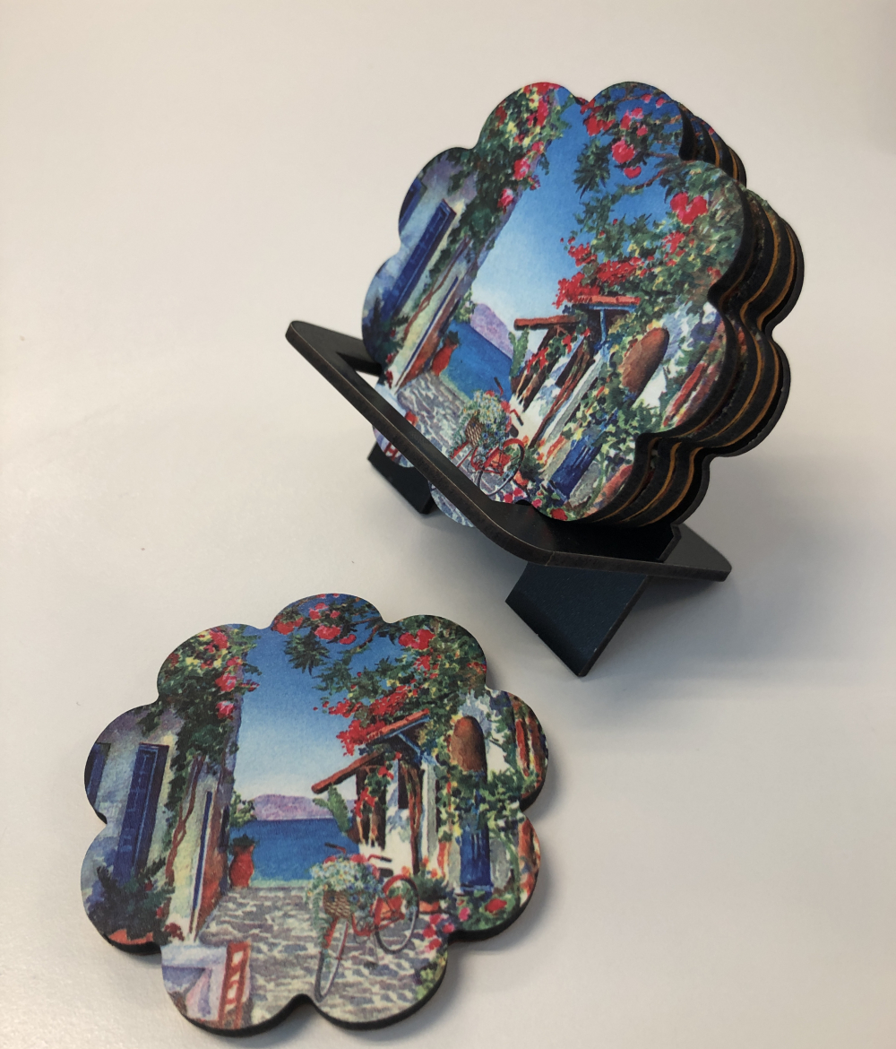Hediyelik Ahşap Bardak Altlığı Seti: Çiçek Kesimli 4’lü Ahşap Bardak Altlığı ve Ahşap Kesim Ayaklık – 31